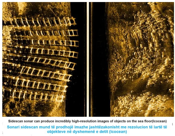 Sonari sidescan mund të prodhojë imazhe jashtëzakonisht me rezolucion të lartë të objekteve në dyshemenë e detit (lcocean)