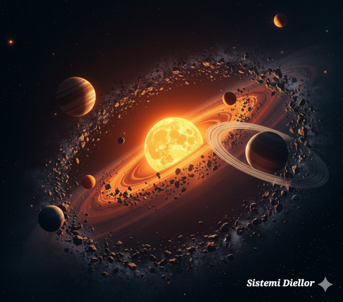Sistemi diellor, është i përbërë nga trupat qiellor si: Dielli, Planetët dhe hënat e tyre, Planete Xhuxh, Asteriode, Kometa, Mediumi ndërplanetar, etj.