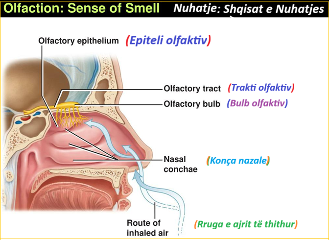 – **Receptorët olfaktivë**: Njerëzit kanë rreth *400 lloje receptorësh aromash*. Këta receptorë zbulojnë molekulat e aromave dhe dërgojnë sinjale në tru.