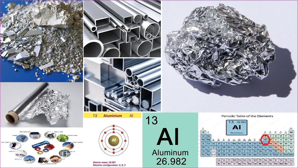 • Karakteristikat kimike: Alumini është një metal pas tranzicionit në grupin e borit, kryesisht duke formuar komponime në gjendjen e oksidimit +3. Është shumë reaktiv dhe nuk ndodh në formën e tij metalike në natyrë. Në vend të kësaj, gjendet në minerale të ndryshme, veçanërisht në boksit, i cili është minerali kryesor për nxjerrjen e aluminit.