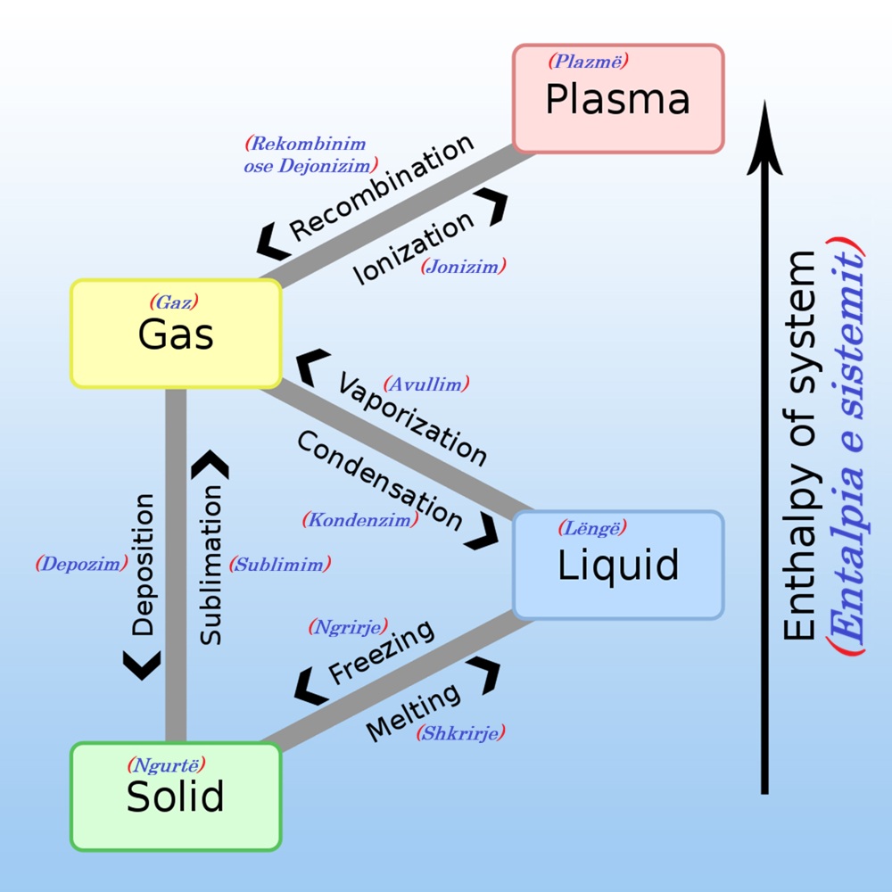 - • Sublimimi: Kalimi i fazës nga i ngurtë në gaz.