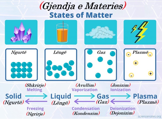 - Katër gjendjet klasike janë të ngurta, të lëngshme, të gazit dhe plazmës.