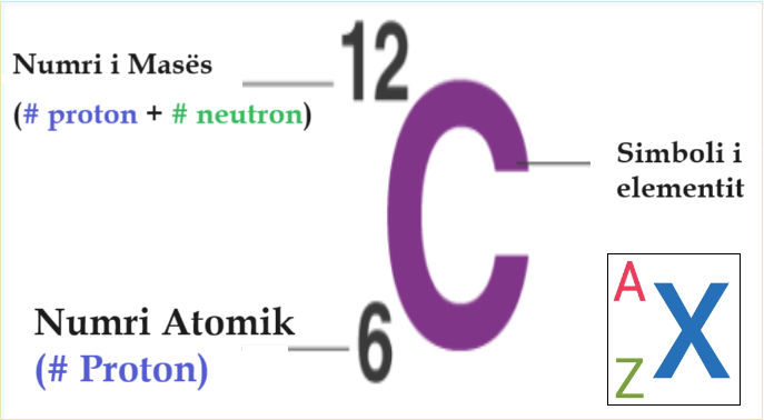Numrit atomik Z dhe numri i neutronit N jep numrin e masës atomike të atomit A.