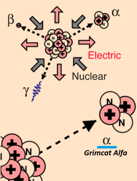 Grimcat Alfa – imazh1. Emetimi i grimcave alfa modelohet si një proces depërtimi i barrierës. Grimca alfa është bërthama e atomit të heliumit dhe është bërthama e stabilitetit më të lartë.