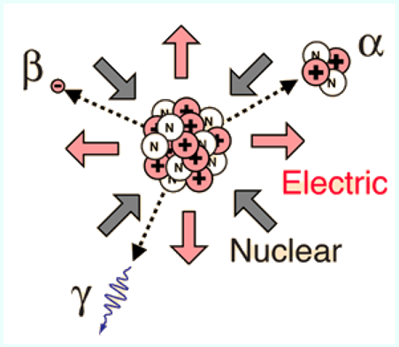 Radioaktiviteti i referohet grimcave që emetohen nga bërthamat si rezultat i paqëndrueshmërisë bërthamore. Për shkak se bërthama përjeton konfliktin intensiv midis dy forcave më të forta në natyrë, nuk duhet të habitet që ka shumë izotope bërthamore të cilat janë të paqëndrueshme dhe lëshojnë një lloj rrezatimi. Llojet më të zakonshme të rrezatimit quhen rrezatim alfa, beta dhe gama, por ka disa lloje të tjera të prishjes radioaktive.