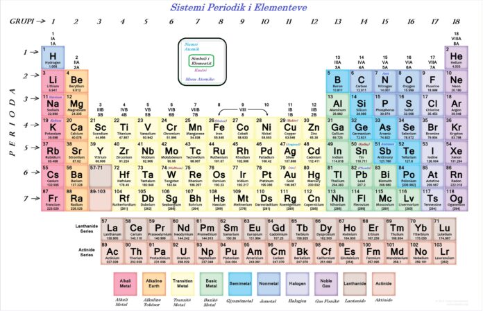 Tabela periodike e elementeve, është skema sipas të cilës renditen elementet kimike bazuar te numri atomik “Z” të tyre. Numri i masës “A” është pjesë që tregon afërsishtë peshën relative të elementeve kimike.