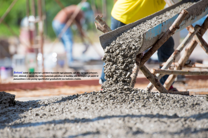 Betoni është material i përbërë nga çimento, ujë dhe agregat (zhavorr, rërë, shkëmb, skorje, stiropol granul, e tjera).