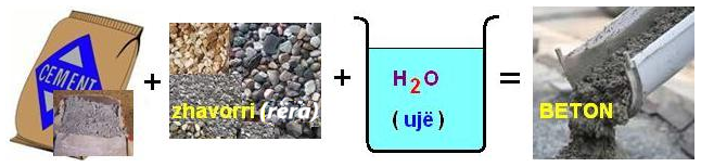 Çimento + Zhavorr (Rërë) + Ujë = BETON