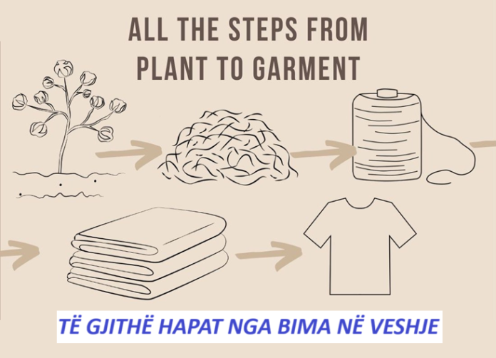Udhëtimi i një produkti tekstili është fibra – fije – pëlhurë – veshje